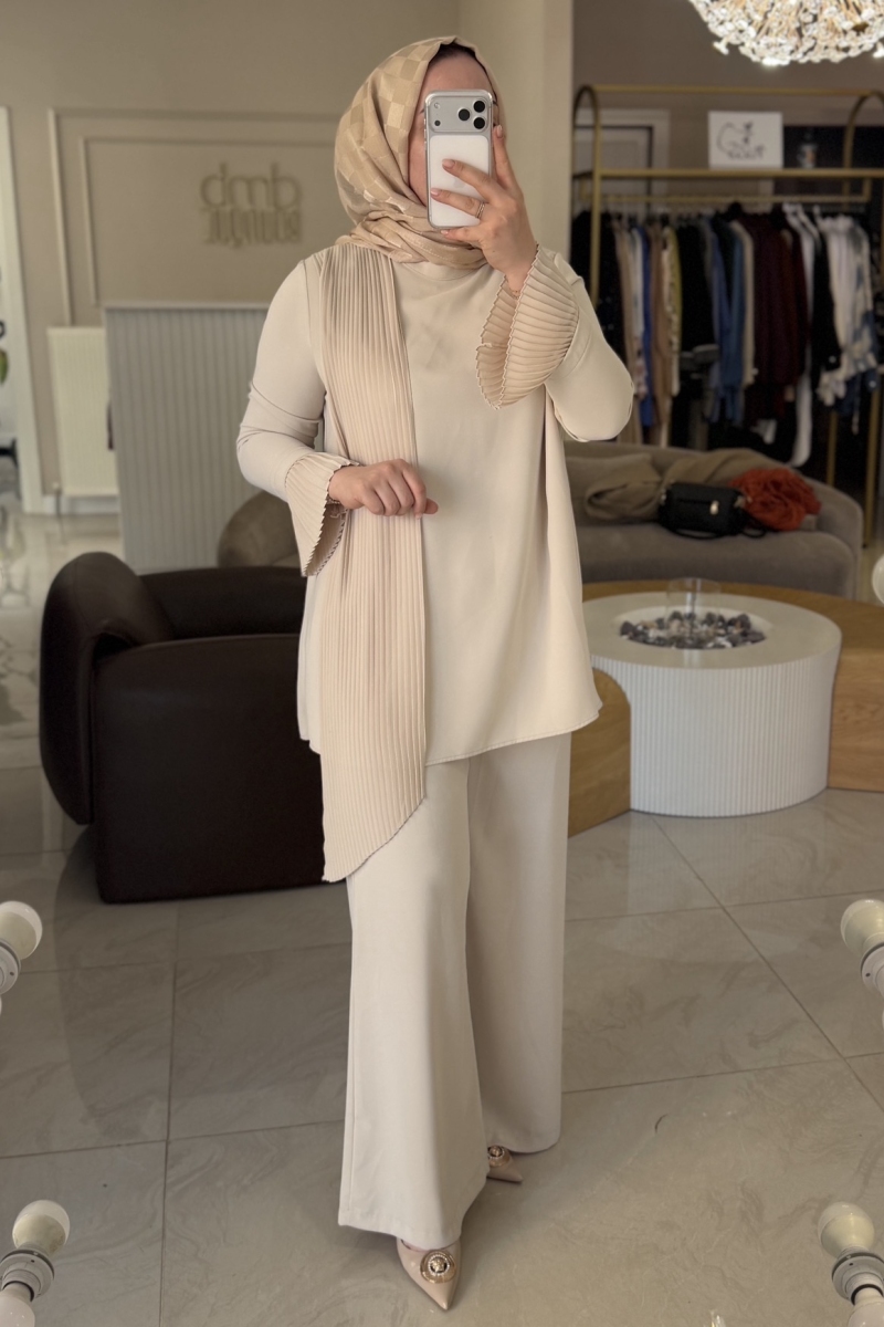 Kahverengi Ön Drapeli Ayarlanabilir Tokalı Tunik Pantolon Takım 5110