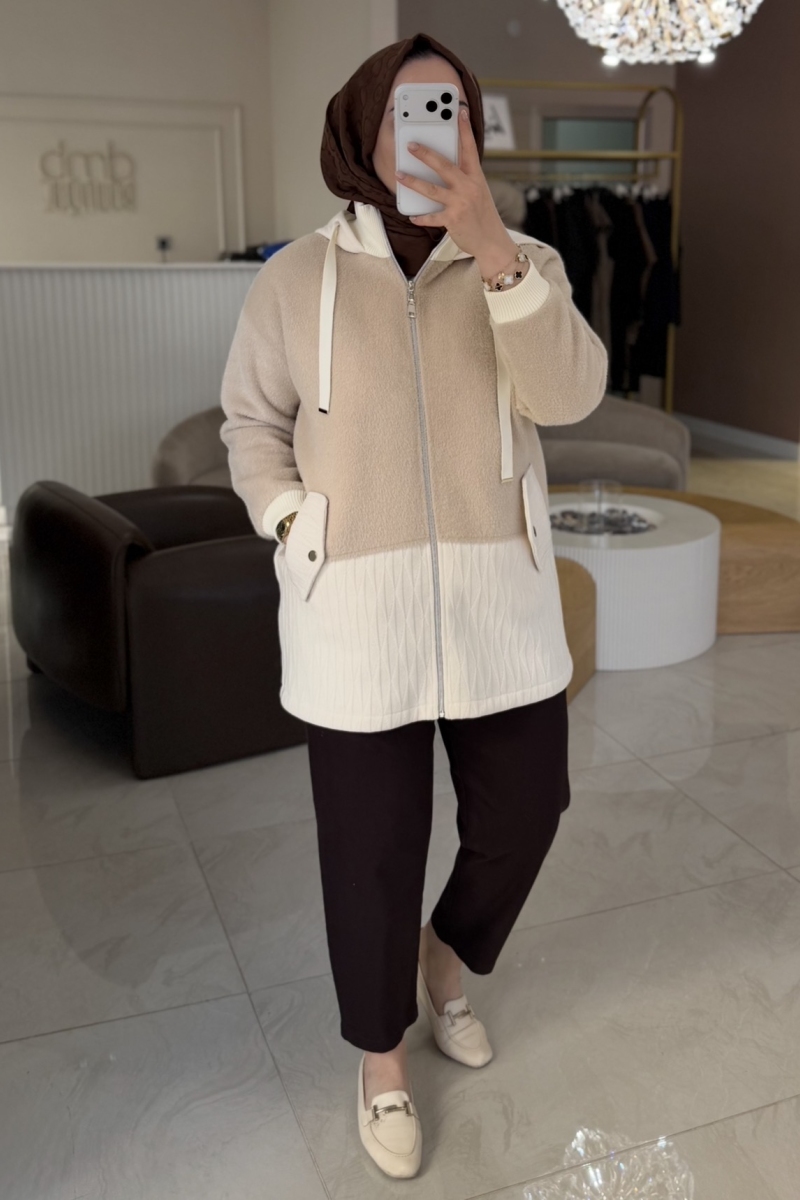 Tıg Trıko Bej Kürk Kombinli Kaban