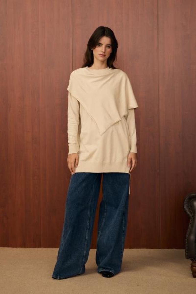 Ekru Angora Göğüs Üstü Taşlı Tunik 7002