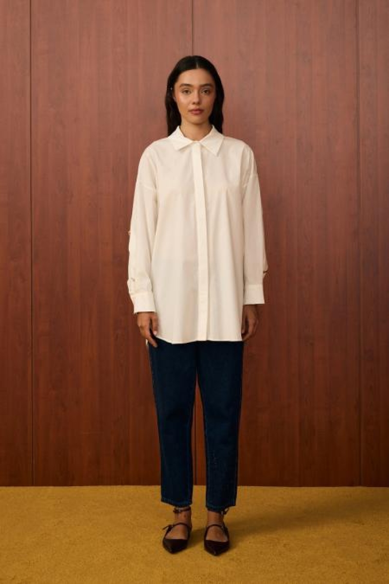 Siyah Kolu Tüy Detaylı Önü Pullu Gömlek