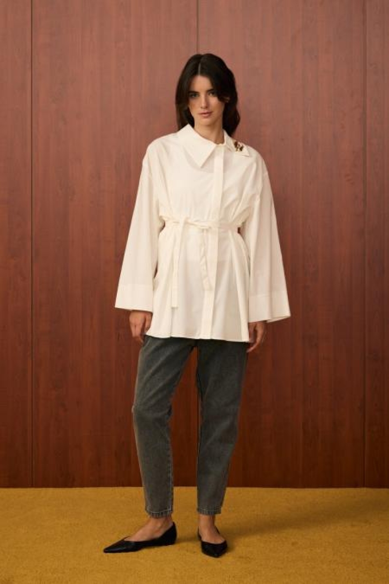 Siyah Kolu Tüy Detaylı Önü Pullu Gömlek