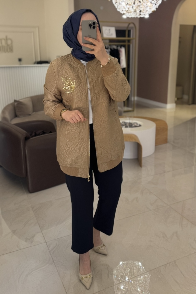 Nuss Camel Yaprak Desenli Kapitone Kap 6013