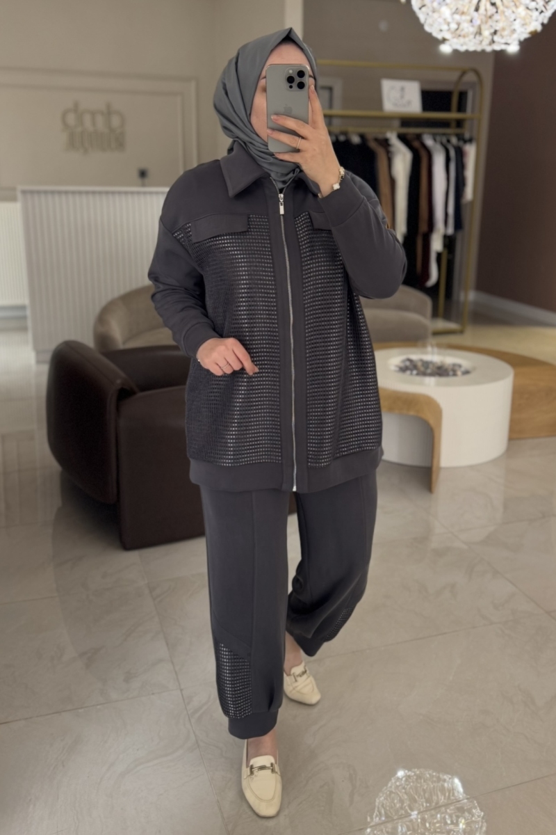 Tıg Trıko Gri File Kaplamalı Pantolonlu Takım