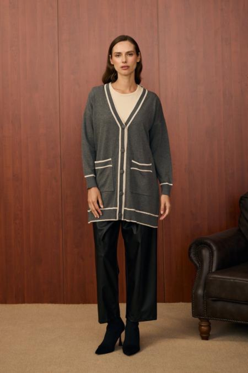 Kahverengi Angora Şerit Taş Detay Hırka 7010