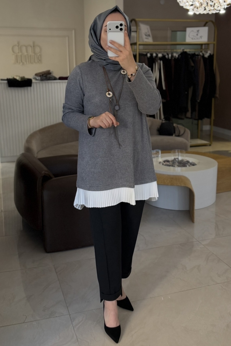 Esswaap Gri Kolyeli Pilise Detaylı Tunik