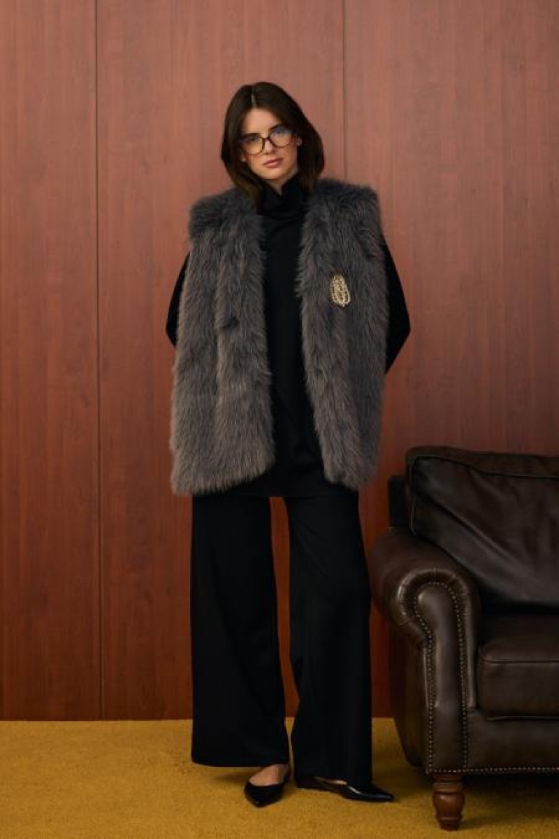 Merwish Gri Lady Kürk Yelek 1597