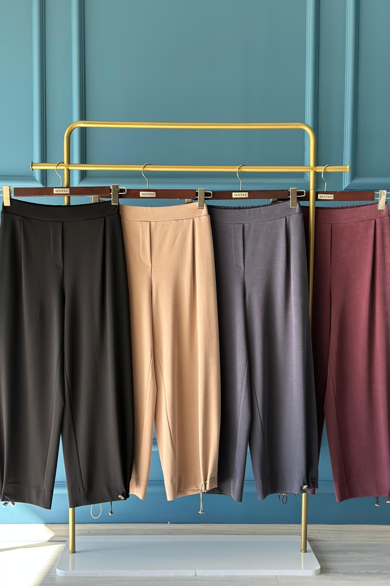 Sentez Grup Gri Paçası Kapsüllü Aura Şalvar Pantolon