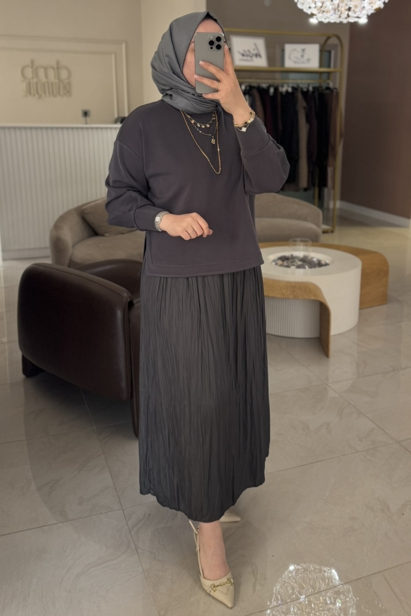Tıg Trıko Gri Saten Kurdele Detaylı Etekli Takım
