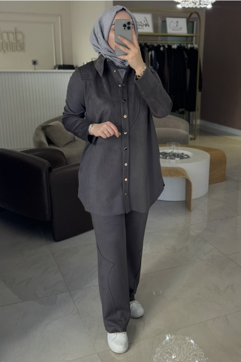 Gri SÜET PARÇALI PANTOLON