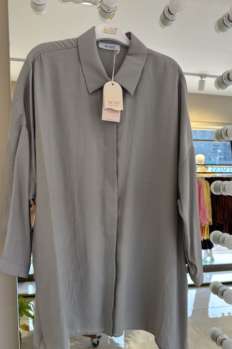 Nuss Gri Tensel Rahat Gömlek-3001