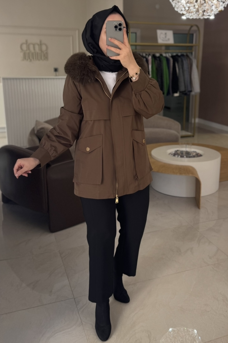 Lısa Exclusıve Haki Orijinal Çıkarılabilir Kürklü Parka
