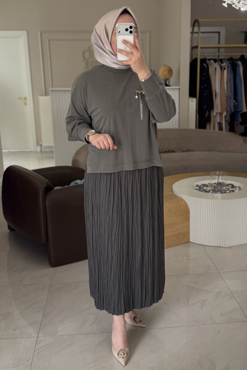 Siyah Kırışık Etekli Takım