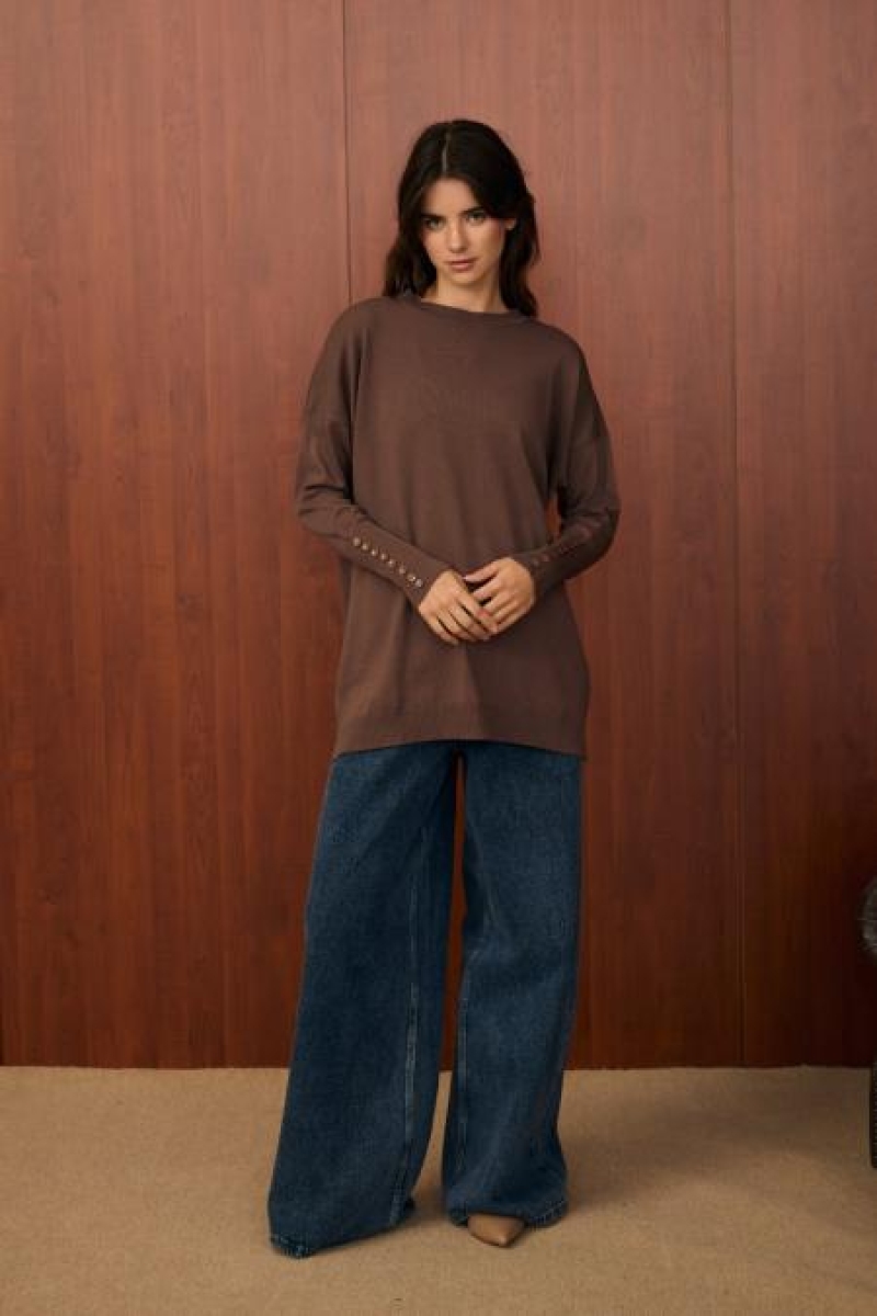 Kahverengi Süet Ve Merserize Detaylı 3004 Tunik