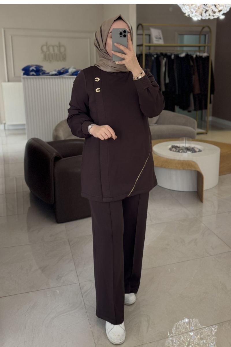 Kahverengi Spor Dikişli Pantolonlu İkili Takım