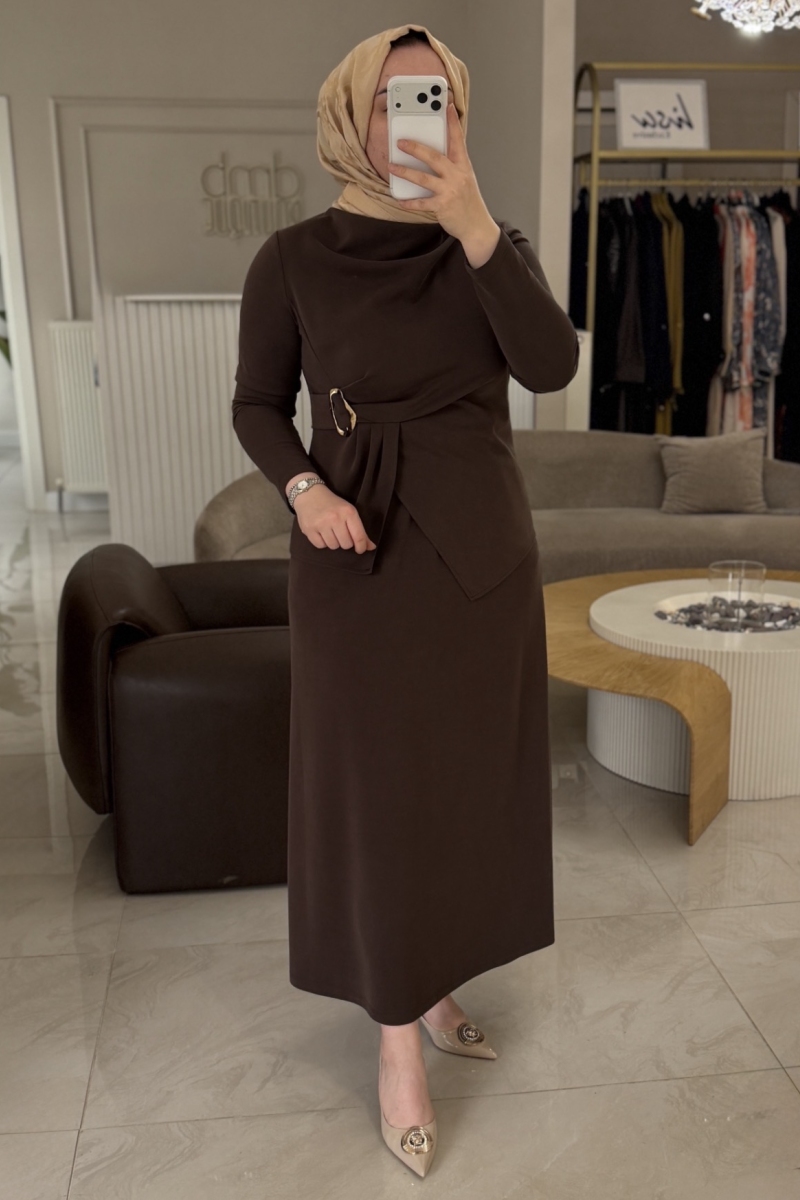 Nuss Kahverengi Gold Detaylı Etekli Takım