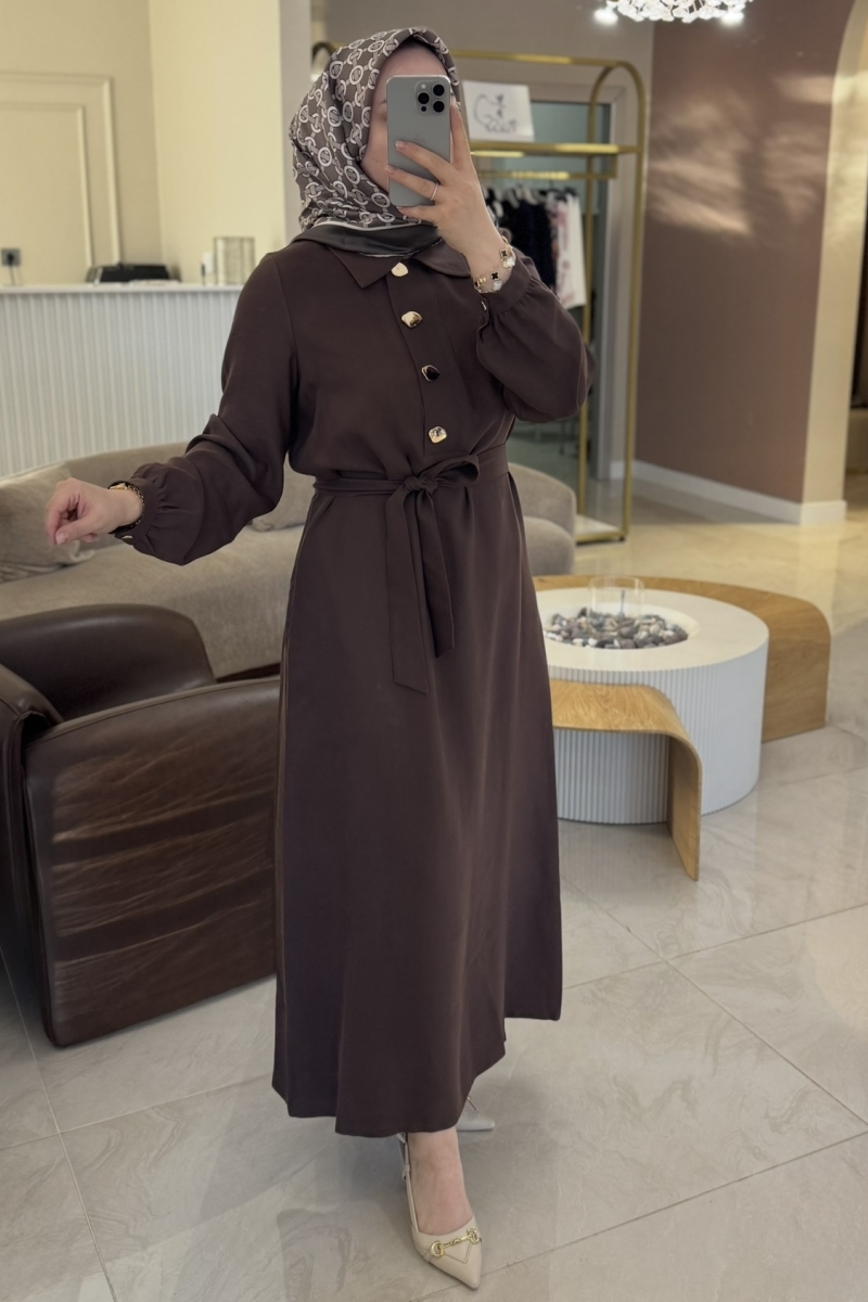 Nuss Kahverengi Gold Düğme Detay Elbise 2007
