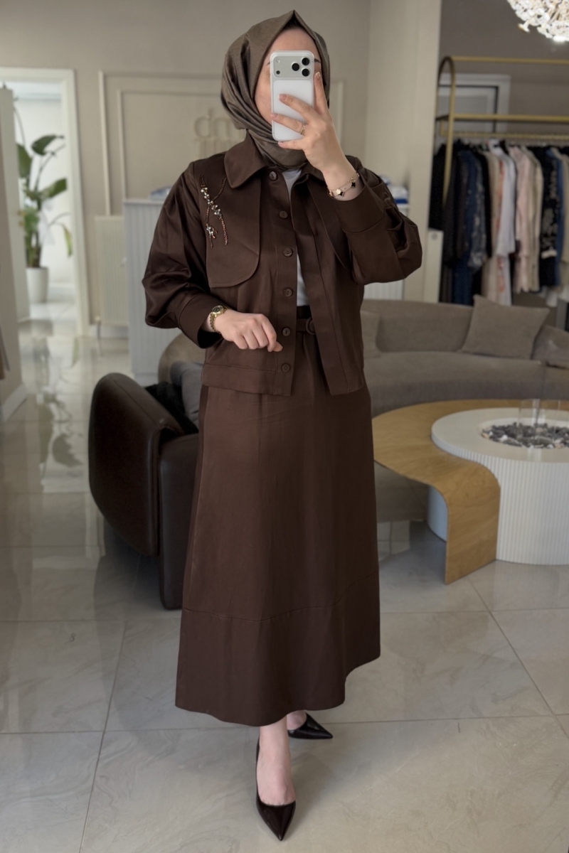 Nuss Kahverengi İşlemeli Kemerli Etekli Takım 1044