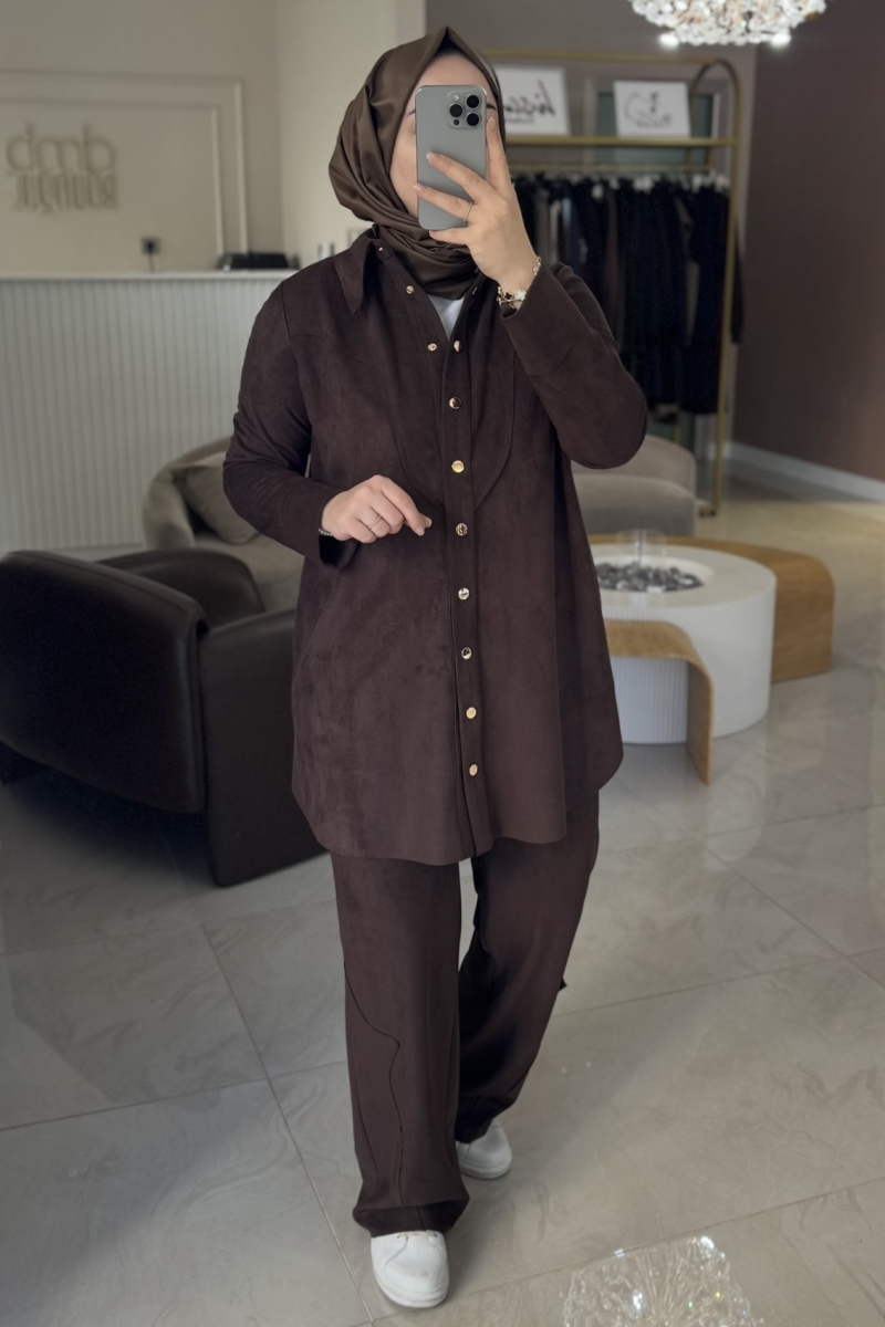 Kahverengi SÜET PARÇALI PANTOLON