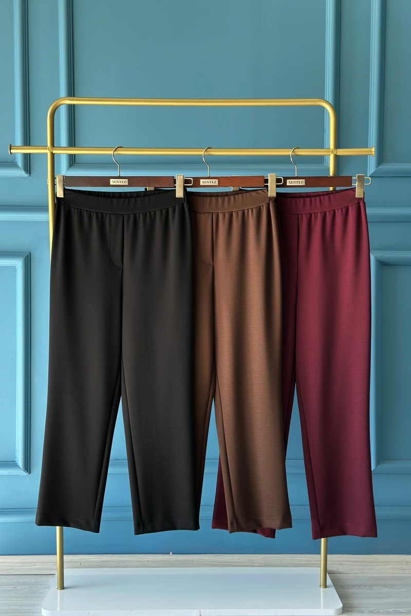 Sentez Grup Kahverengi Lodos Lastikli Örme Saten Pantolon