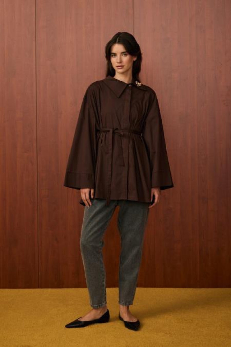 Siyah Kolu Tüy Detaylı Önü Pullu Gömlek