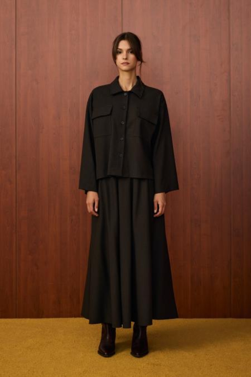 Siyah Üst Büzgü Detay Fermuarlı Eteklı Takım