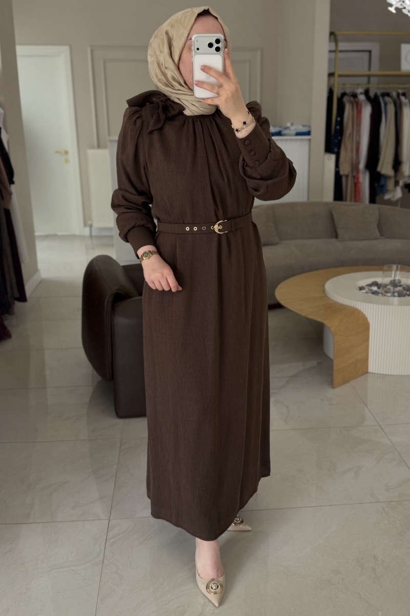 Nuss Kahverengi Sim Şeritli Kemerli Elbise 2028