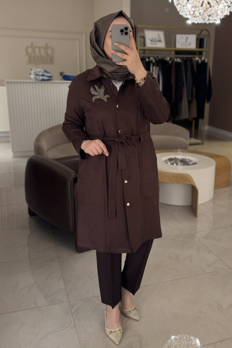 Nuss Kahverengi Taş İşlemeli Çıt Uzun Kap 6012