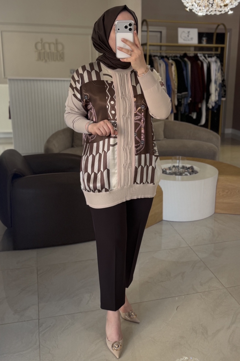 Ghisa Kahverengi Triko Mixli Desenli Tunik