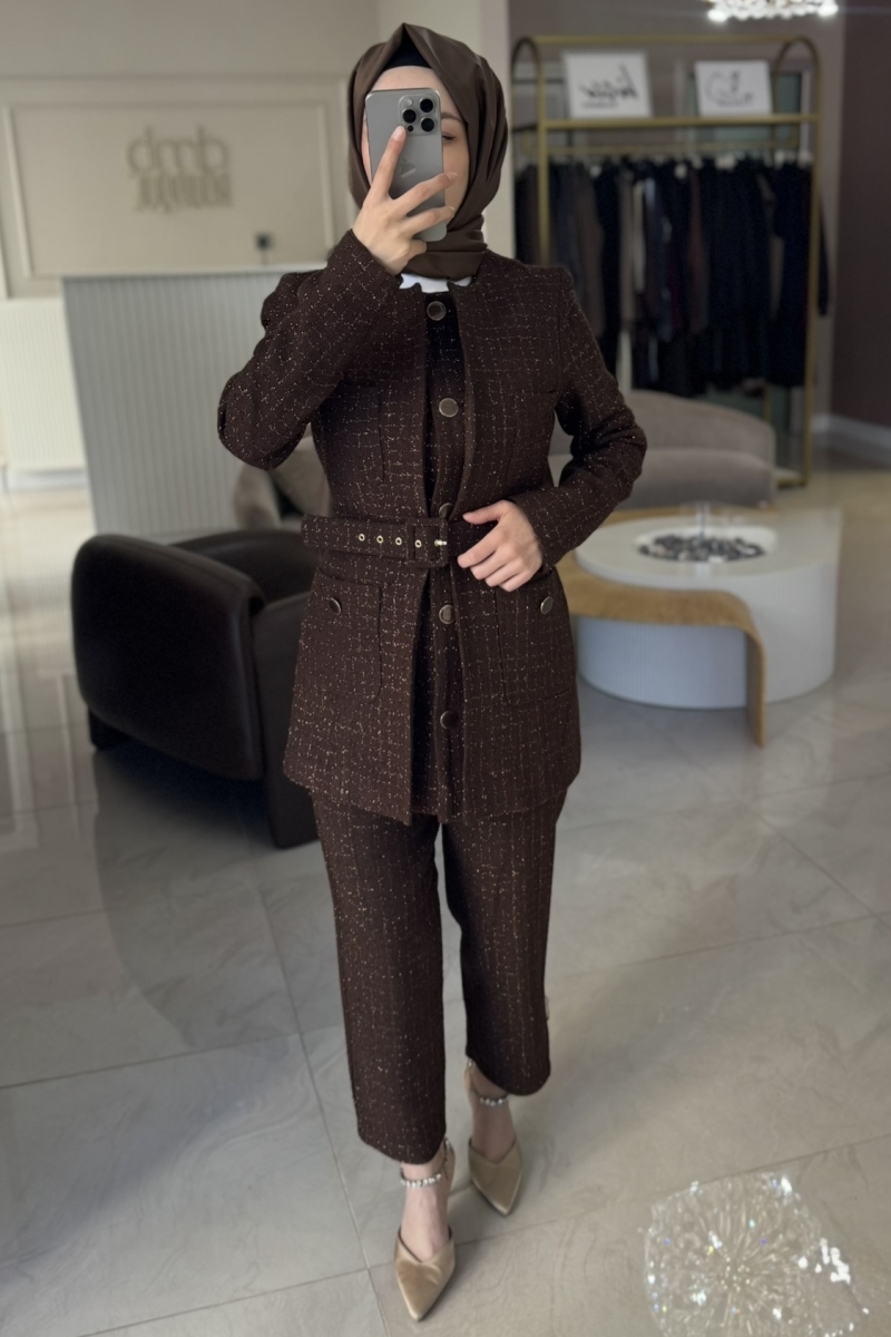 Lısa Exclusıve Kahverengi Tuvid Takım 6005