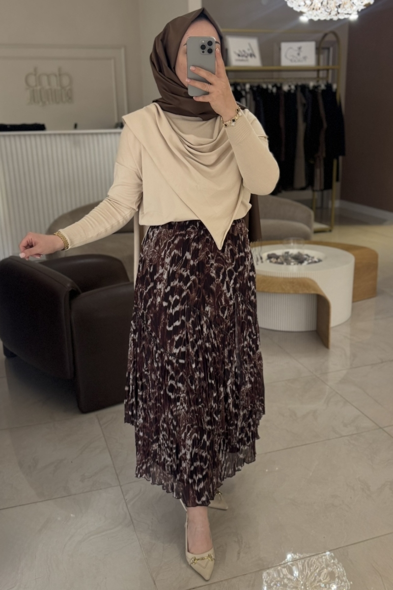 Kahverengi Leopar Kırıştırma Etek