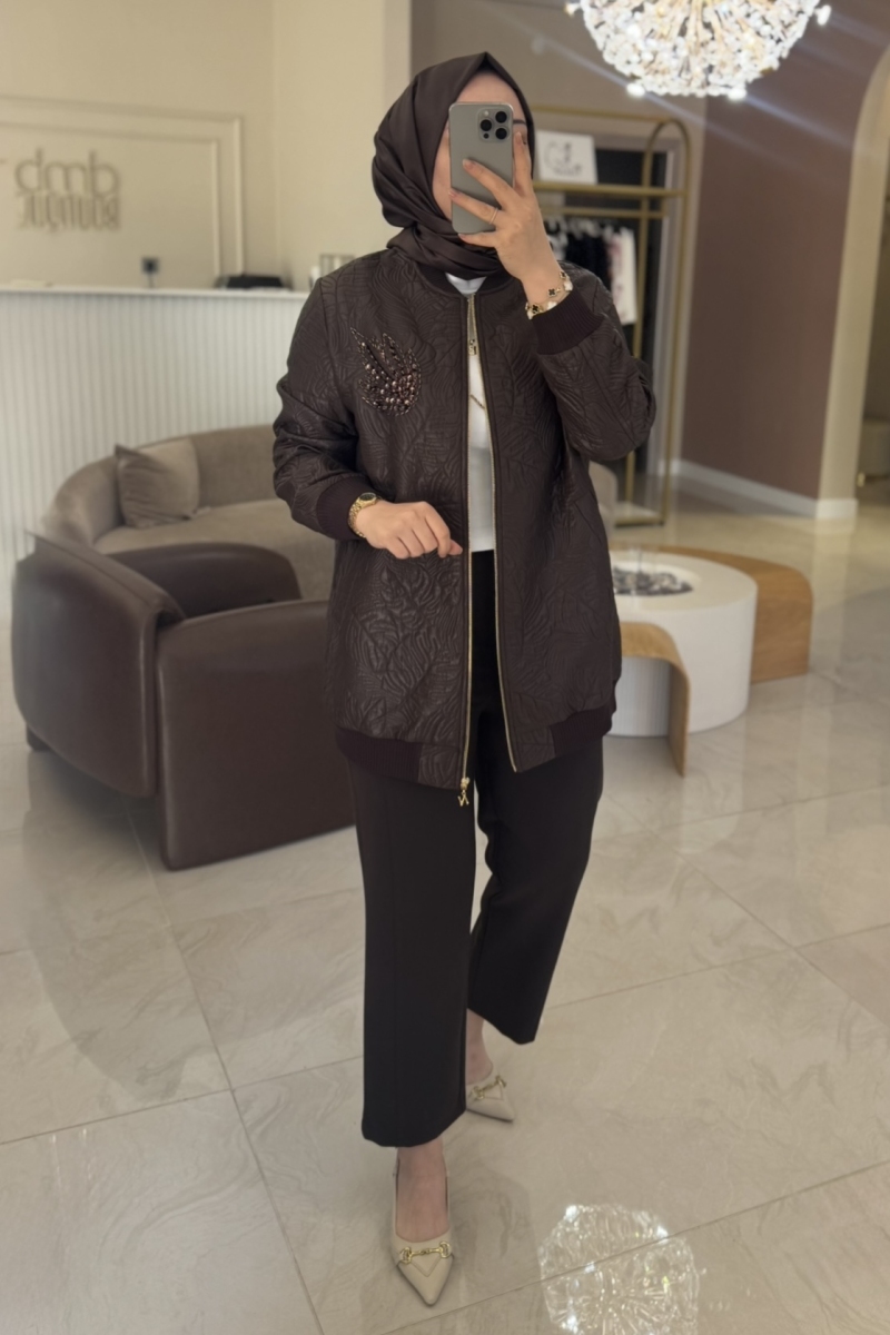Kahverengi YAPRAK DESENLİ KAPİTONE KAP 6013