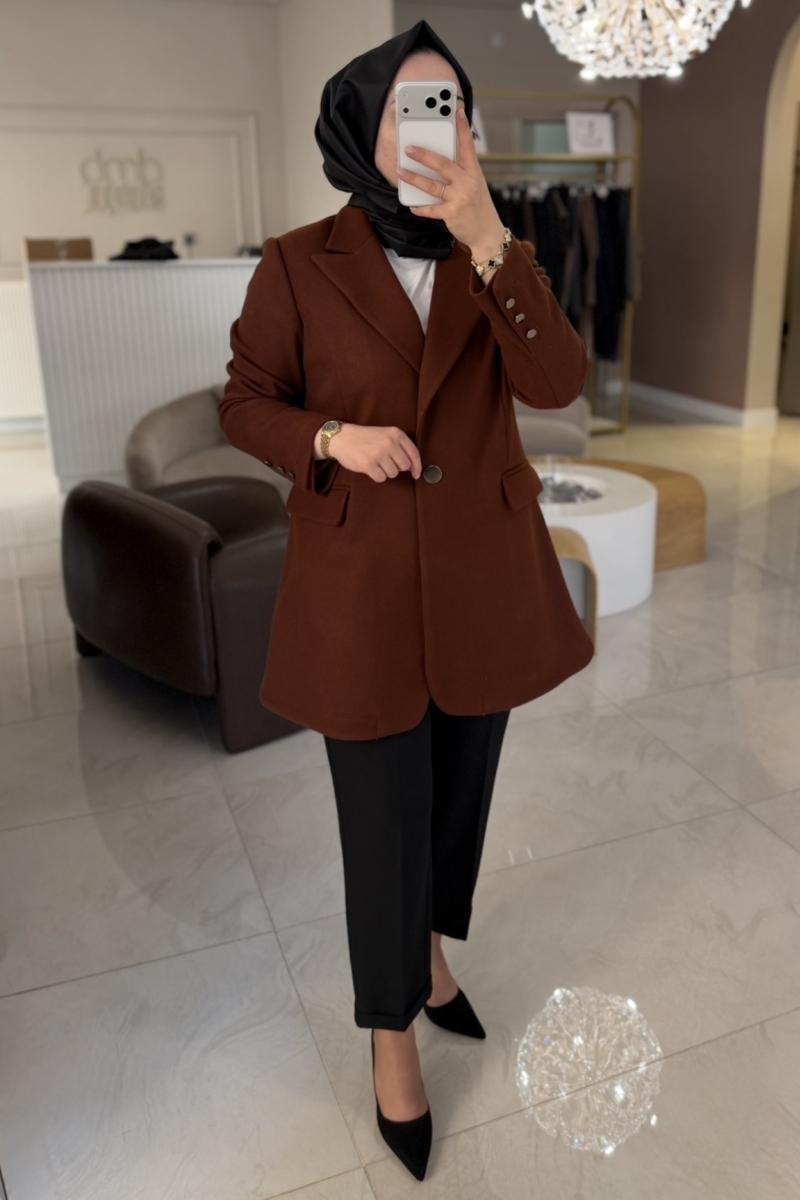 Kahverengi Blazer Triko Ceket 1509
