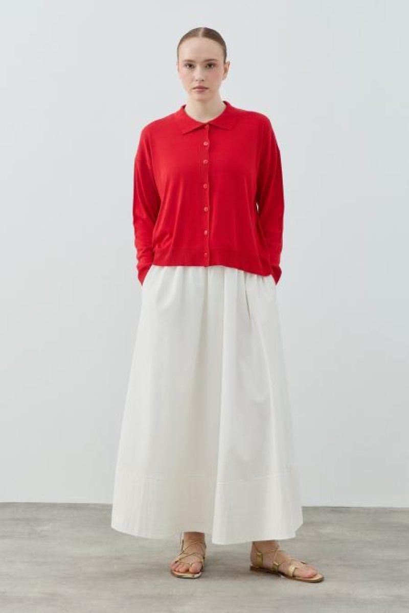 Kırmızı Yan Düğme Hırka 1789