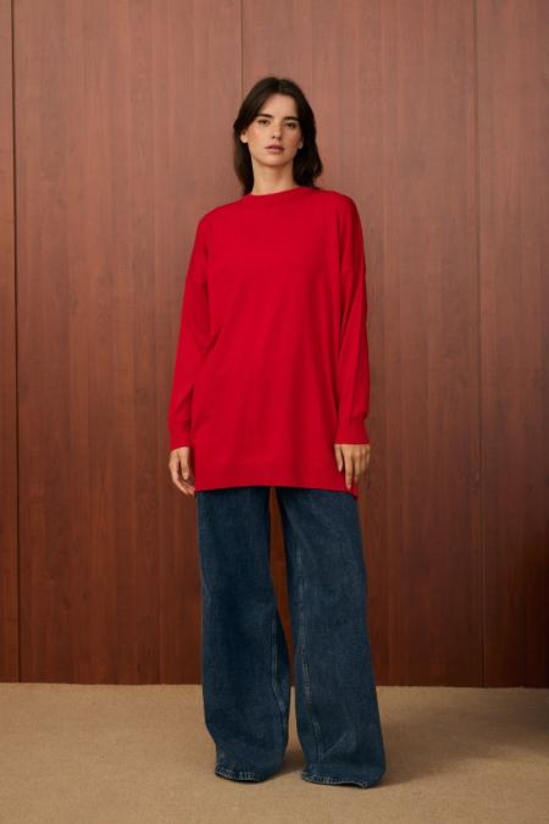 Merwish Kırmızı Venedik Triko Tunik 1502