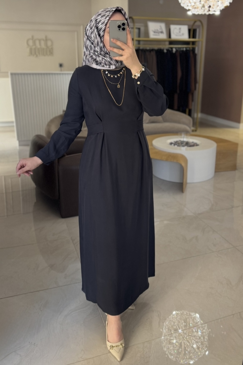 Nuss Lacivert Bel Bağcık Detaylı Elbise