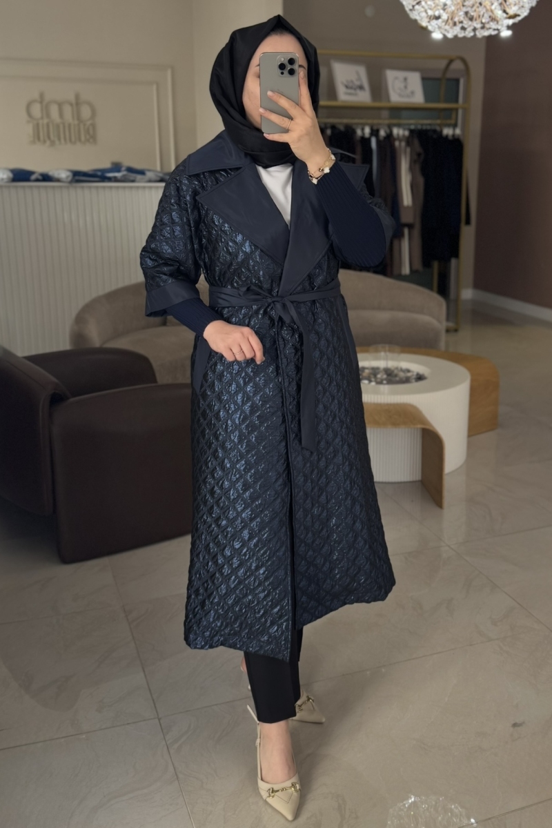 Nuss Lacivert Kapitone Yarım Kol Kap