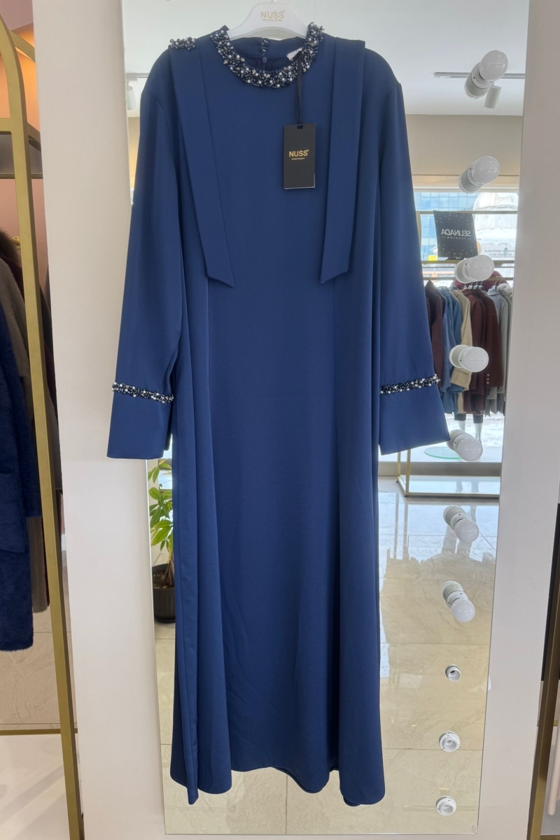 Lacivert Taş İşleme Abaya