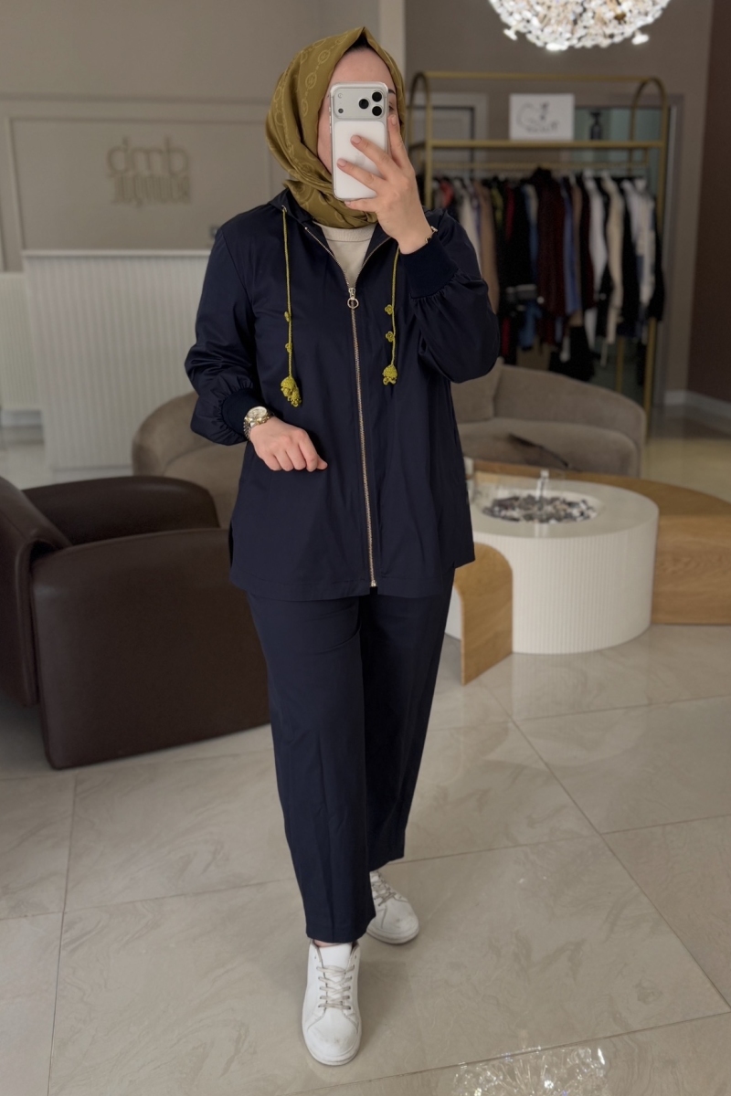 Lacivert Fermuar Kontrast Biyeli Charmlı Takım