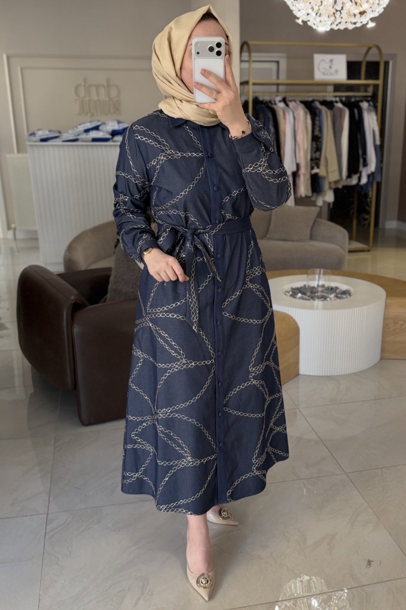 Nuss Lacivert Zincir Detaylı Elbise 2044