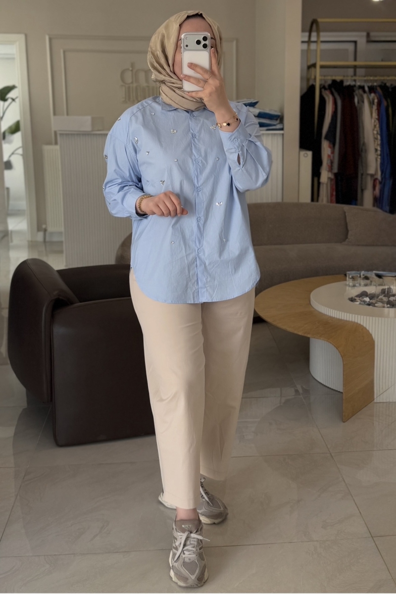Sarı Taş Detay Çizgili Sarı Gömlek