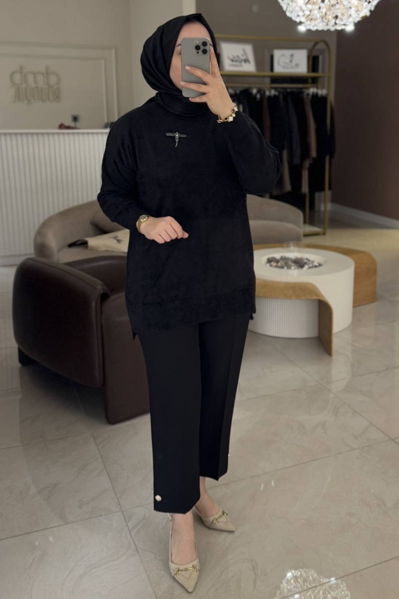 Nuss Siyah Angora Balıkçı Yaka Kazak 7000
