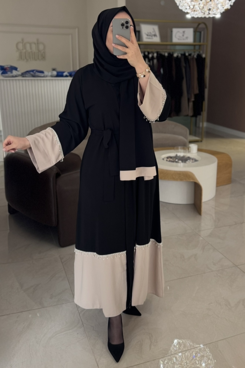 Nuraa Collections Siyah Bej Renk Geçişli Abaya
