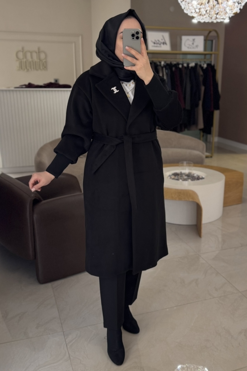Esswaap Siyah Broş Detay Ribana Kol Kaban