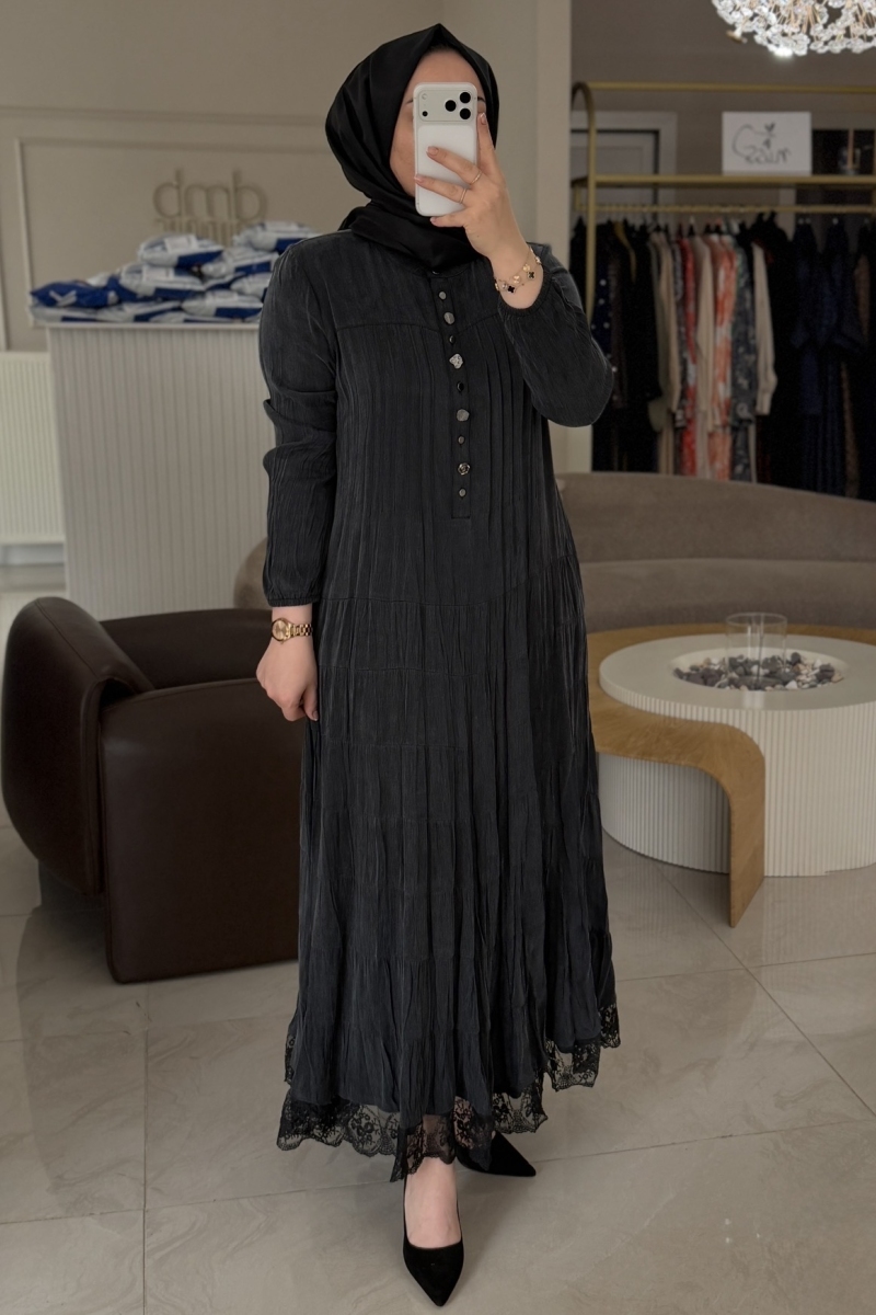 Lıssmore Siyah Çıt Ve Etek Ucu Dantel Detay Elbise