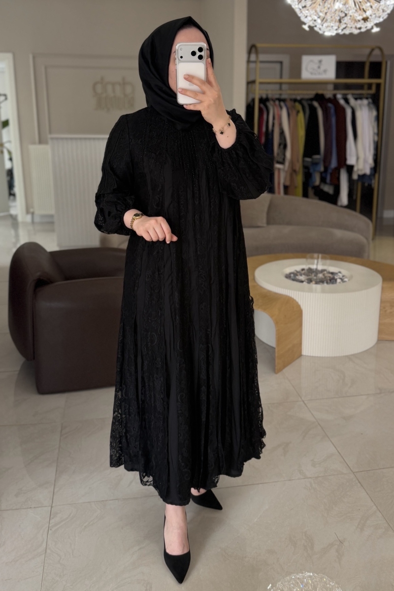 Lıssmore Siyah Dantel Taş İşleme Kupra Elbise