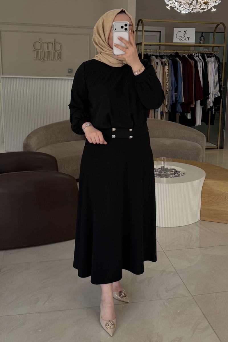Ghisa Siyah Düğme Detaylı Ribanalı Bluz