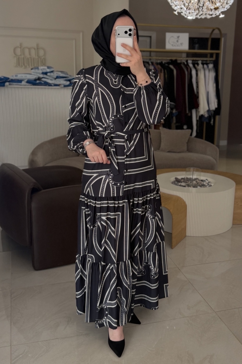 Merwish Siyah Estate Elbise