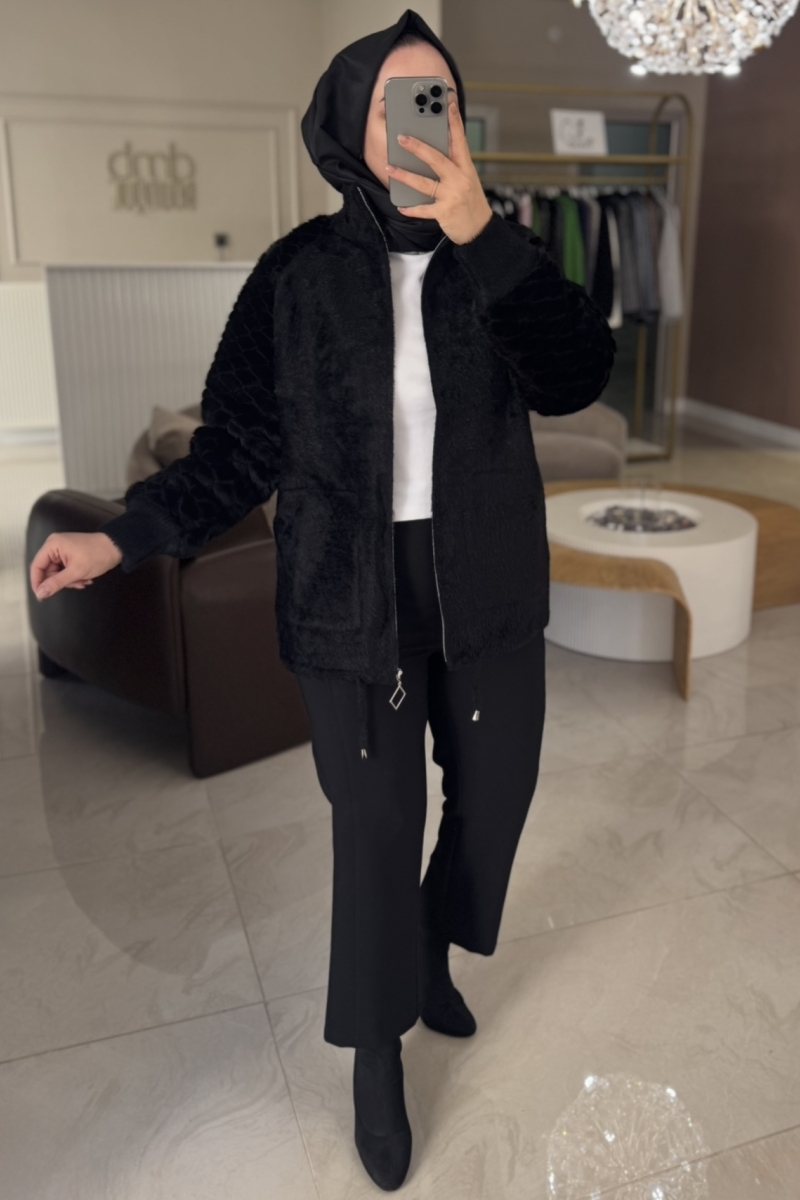 Tıg Trıko Siyah Fermuarlıı Kürklü Kaban