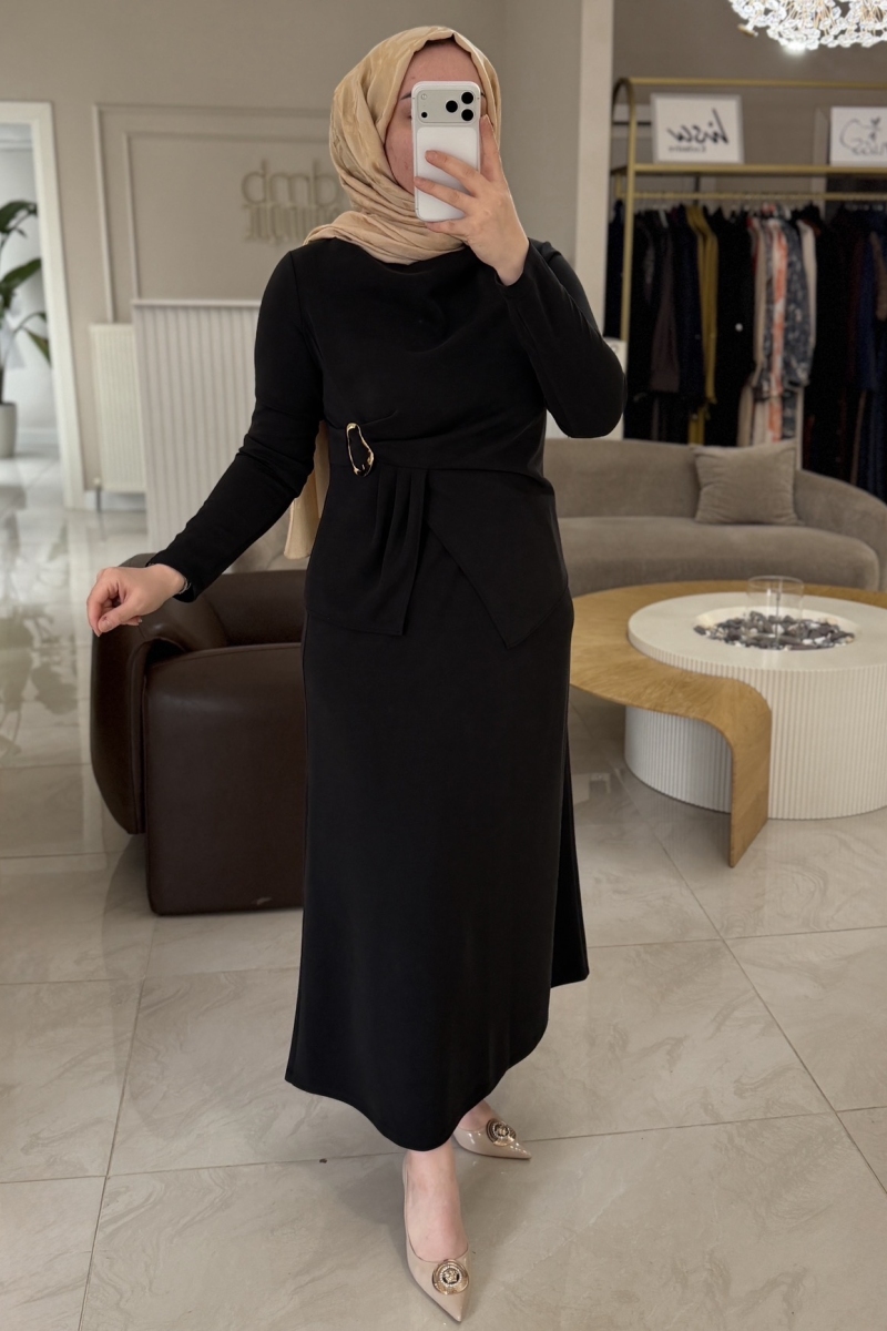 Nuss Siyah Gold Detaylı Etekli Takım