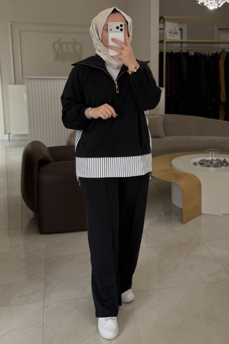 Nuss Siyah Gömlek Detaylı Takım 1075